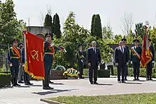 Since Independence, the holidays was for the most part neglected by pro-European Union governments and presidents. Major celebrations of the holiday took place under Presidents Vladimir Voronin and Igor Dodon, both of whom are considered to be russophiles. In 2006, the newly renovated Eternity Memorial Complex in Chișinău was opened on Liberation Day by Voronin.[6] Generally, wreaths are annually laid at the Eternity Memorial Complex[7] in Chișinău, during which the President of Moldova delivers a keynote address (sometimes delivered in both the Romanian and Russian languages) and presides over a march past by the Honor Guard Company of the Moldovan National Army.[8]