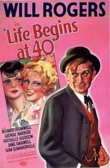 Life Begins at 40 is a 1935 black-and-white film starring Will Rogers and Richard Cromwell. It is based on the non-fiction self-help book Life Begins at Forty by Walter B. Pitkin.