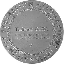 1938 | Tadeusz Góra | ![]() | for a goal flight of 577.8 kilometres (359.0 miles; 312.0 nautical miles) |