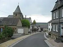 - Hauptstraße 14 – building with mansard roof, timber framing slated, marked 1879