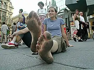 Locomotor effects of shoes are the way in which the physical characteristics or components of shoes influence the locomotion neuromechanics of a person. Depending on the characteristics of the shoes, the effects are various, ranging from alteration in balance and posture, muscle activity of different muscles as measured by electromyography (EMG), and the impact force. There are many different types of shoes that exist, such as running, walking, loafers, high heels, sandals, slippers, work boots,[1] dress shoes, and many more. However, a typical shoe will be composed of an insole, midsole, outsole, and heels, if any. In an unshod condition, where one is without any shoes, the locomotor effects are primarily observed in the heel strike patterns and resulting impact forces generated on the ground.