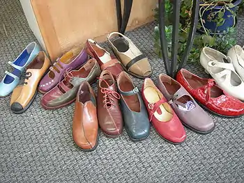 Rocker bottom shoes have thicker-than-normal soles with rounded heels, and most varieties of the shoes are constructed such as to shift the wearer's body weight to behind the ankle, therefore finding the balance requires more effort.[14]