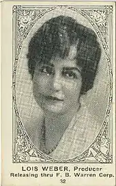 During the war years, Weber "achieved tremendous success by combining a canny commercial sense with a rare vision of cinema as a moral tool".[15] At her zenith, "few men, before or since, have retained such absolute control over the films they have directed—and certainly no women directors have achieved the all-embracing, powerful status once held by Lois Weber".[16] By 1920, Weber was considered the "premier woman director of the screen and author and producer of the biggest money making features in the history of the film business".[14]