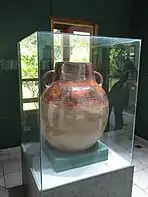 In 1935, Frans Blom and Jens Yde conducted an excavation of a large mound at Los Naranjos. They found a large collection of polychrome pottery. They believed the large mound, which was one of many, was a burial mound because the bowls and pots they found were deliberately buried there. J.B. Edwards, a former Harvard botanist, helped Blom and Yde in their exploration of the site. He had excavated there in the past and had a large collection of antiquities. Yde purchased many of the specimens for the Danish National Museum. One particular vessel that Yde purchased became a topic of interest and was coined "the Yde Vessel".[2] From 1967 to 1969, archaeologists Claude F. Baudez and Pierre Becquelin periodically excavated the region. The two published the work Archeologie de Los Naranjos as a field guide for their findings. The work was written in French and an English translation is not readily available. The book includes both pictures of artifacts and tables that explain periods and locations of uncovered antiquities. They found sherds of ceramic vessels that came from four different periods, suggesting prolonged use of the site.