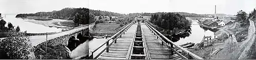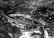 During World War II Lysaker Station was hit by five sabotage missions by the Norwegian resistance movement, in which tanks of gasoline, attached or not attached to railroad cars, were blown up. The sabotages took place on 16 December 1944 and 9, 10, 12 and 13 January 1945. On 13 January a tanker truck was attacked as well. There were three additional attacks on Lysaker in 1944 and 1945, two of them against factories and workshops.[10] Also, the Lysaker Bridge sabotage took place in the immediate vicinity of the station.[11]