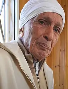 Mahjoubi Aherdane (born 1921/1924 in Oulmes and died on November 15, 2020[1]) was a Moroccan politician, Amazigh nationalist, poet and painter. Alongside Abdelkrim al-Khatib, he founded the Popular Movement in 1957, a political party defending the Amazigh cause and formed mainly of former militants of the Moroccan Liberation Army (ALN).