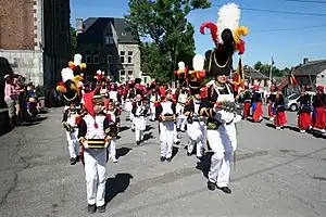 The Marches of Entre-Sambre-et-Meuse are a set of folk marches, taking place from May to October, in Belgium in Entre-Sambre-et-Meuse. Ancient religious processions dedicated to local saints, protectors of parishes have taken over time a folkloric character, without the religious aspect getting totally lost. They are accompanied by armed escorts, which are just as well traditional.