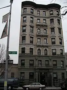 On September 4, 1839, a 20-acre (81,000 m2) residential square, on land which was formerly a race track for horses, out of 173 acres (0.70 km2) of a land grant farm owned by the Benson family, was set aside.[11] The square was relocated from the Commissioners' Plan of 1811, which had planned for a square in the neighborhood, in order to take advantage of the rugged topography that stood squarely in the path of Fifth Avenue, which was being extended north of Central Park. "Mount Morris Square" was officially opened December 1, 1840.[12]