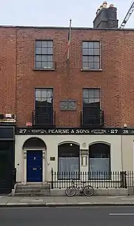 Margaret Mary Pearse was born at 27 Great Brunswick Street, in Dublin, the eldest child of James Pearse and Margaret Pearse (née Brady).[2] She grew up in cramped living conditions as often the other rooms in the house were rented to subtenants, leaving the Pearse family to share one room.[3] During her childhood, Margaret was very friendly with James Vincent, her half-brother from her father's previous marriage. Their close relationship did not follow into adulthood.[3] She developed a close bond with her father, more so than with her mother. She was educated at the Holy Faith Convent in Glasnevin. After leaving school, she trained as a teacher.[4] Margaret did not enter paid employment after receiving her teacher training but was still interested in education. In 1905 she travelled to Belgium with her brother to study the workings of the bilingual education system and to improve her French. She tried to set up her own school for infants in 1907 in the family home on Great Brunswick Street and was constantly encouraged by her two brothers, whom assisted her in teaching on many occasions.[3] Her younger brother Willie provided art work for the classes to inspire the students.[3]