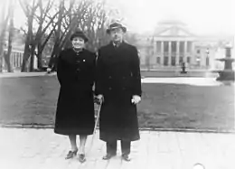 Heinrich and Margarete married in July 1928.[11] Initially, Heinrich struggled with the decision to reveal his relationship with Margarete to his parents, partly due to her being seven years older, but also because she was a divorcee, and foremost, because she was a Protestant.[13] None of Himmler's family members attended the wedding, so Heinrich’s groomsmen were the father and brother of the bride.[14] Ultimately, Heinrich Himmler's parents accepted Margarete, but the family kept their distance from her and remained that way throughout the length of the relationship.[15] The couple had their only child, Gudrun, who was born on 8 August 1929; they were also foster parents to Gerhard von Ahe, the son of an SS officer who had died before the war.[16] Margarete sold her share of the clinic and used the proceeds to buy a plot of land in Waldtrudering, near Munich, where they put up a prefabricated house. Himmler was constantly away on party business, so his wife took charge of their efforts—mostly unsuccessful—to raise livestock for sale. After the Nazis seized power in January 1933, the family moved first to Möhlstrasse in Munich, and in 1934 to Gmund am Tegernsee, where they bought a house.