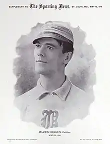 Martin Bergen (October 25, 1871 – January 19, 1900) was an American professional baseball player who murdered his family before slicing his own throat. From 1896 to 1899 he played in 344 games with the Boston Beaneaters of Major League Baseball, 337 of them as their catcher. Bergen helped the Beaneaters to National League pennants in 1897 and 1898, as well as a second-place finish in 1899.