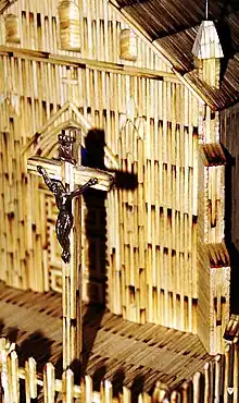 An exceptionally large and impressive matchstick model was a scratch-built replica of Notre Dame Cathedral which included electric lights and measured over six feet in length.