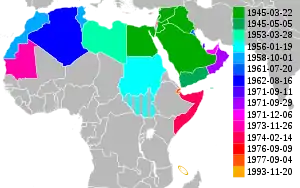 - July 2011 – South Sudan gains independence from Sudan, but does not join the Arab League.[16]