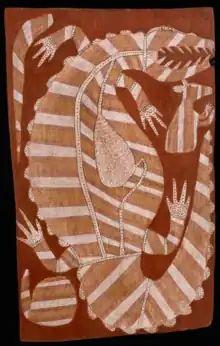 - Ngalyod the Rainbow Serpent (1980), natural pigments on bark