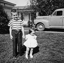 Returning in 1953, Davis was raised in a tract home[3] in the community of Bostonia[lower-alpha 1] in San Diego County.[2] His father Dwight worked in the wholesale meat industry for the Superior Meat Company in downtown San Diego and was a member of the meat cutter's union, and his uncle ran a wholesale meat company.[2][3][7] The nearly all-white neighborhood of Davis's childhood was populated by refugees of the Great Depression, mostly Southern Baptist families from Oklahoma and Texas, and had a country-western ballroom and rodeo. Davis identified with his community as a "redneck" and a "Westerner" in opposition to the "surfer" beach culture held by the wealthier, Methodist neighborhoods south of El Cajon's Main Street. Racism and anti-communism were endemic in the town, but Democrats held the dominant political role in the community due to the influence of the Machinists Union.[3]