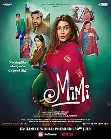 Mimi is a 2021 Indian Hindi-language comedy-drama film directed by Laxman Utekar and produced by Dinesh Vijan under Maddock Films. A remake of the 2011 Marathi film Mala Aai Vhhaychy!, it stars Kriti Sanon in the eponymous lead who opts to be a surrogate mother for a foreign couple. Pankaj Tripathi, Sai Tamhankar, Manoj Pahwa, Supriya Pathak, Evelyn Edwards and Aidan Whytock appear in supporting roles.