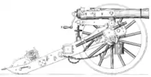 Gabert | 04 | Four barrels each with two chambers. While four chambers are in use, four are reloaded.2 | 11 mm (0.4 in) | 1870 | Tripod-mounted, unlike the other carriage-mounted variants |