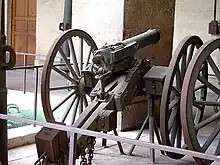 ![]() Reffye mitrailleuse Le Général Hanicque ("Canon à balles modèle 1866"), manufactured in 1867, on display in Les Invalides | |