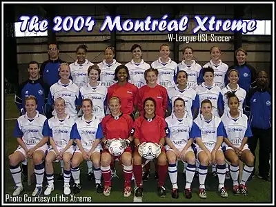- Montreal Xtreme standing in W-League in USL website, 2004.
