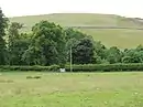 On the summit Morebattle Hill, half-a-mile south of the village, is the remains of an Iron Age hillfort (grid reference NT771239).[7] The fort is shaped like an elongated letter D, with its main axis lying northeast to southwest.[7] The fort measures 190 metres in length by 70 metres in greatest width within a single rampart.[7] The remains of a small settlement can be seen at the northeast end of the fort.[7]