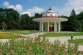 In 1918-1939 Morshyn was in Polish territory and, as "Morszyn-Zdrój," was a popular spa. The spa belonged to the Medical Association (Towarzystwo Lekarskie) from Lviv (Lwów), in late 1920s almost 1000 guests came there yearly. During the times when western Ukraine was under Polish authority, the city was part of the Ivano-Frankivsk regional administration, Stanisławów Voivodeship back then. Currently the town is located in the close proximity to Ivano-Frankivsk Oblast and Carpathian Mountains.[5] Currently the city is one of the major national tourist resort as well as health resorts. The city continues to carry on its legacy of one of the best health resorts in Europe.