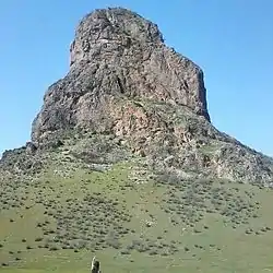 The elevation of Mount Goyazan is located 20 kilometers far from Qazakh district of Azerbaijan.[16] Its elevation is 250 meters.[16] The mountain has volcanic origin and it is not connected to any mountain ridges.[16] At the bottom of the mountain, there are ancient dwellings.[16]