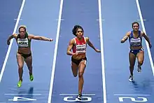 Mujinga Kambundji (born 17 June 1992) is a Swiss sprinter. She won the bronze medal in the 200 metres at the 2019 World Championships. Kambundji is the 60 metres 2022 World indoor champion, becoming the joint fourth-fastest woman of all time in the event, after earning a bronze in 2018. She is a three-time European Championships medallist, with gold for the 200 m and silver for the 100 m in 2022, and bronze for the 100 m in 2016. At the European Indoor Championships, she earned gold in the 60 m in 2023 and bronze in 2017.
