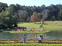 The National Kandawgyi Botanical Gardens (Burmese: ကန်တော်ကြီး အမျိုးသား ရုက္ခဗေဒ ဥယျာဉ်; formerly National Botanical Gardens) is a 177 hectare botanical garden located in the Alpine town of Pyin U Lwin (formerly Maymyo), Burma, situated at an elevation of 1000 metres (3,605 ft) and 69 km (43 mi) by road from Mandalay.[1] The current official name is National Kandawgyi Garden.