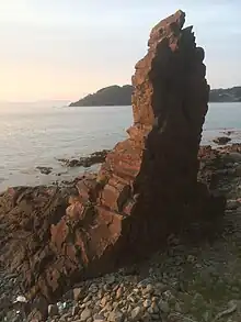 The oldest rock found on the Natsudomari Peninsula can be found exposed on Mount Higashidake, south-southeast of Asamushi Onsen. The mountain's rock is granodiorite that was formed during the Callovian. The second oldest rock is a mixture of Late Jurassic chert and limestone known as the Tateishi Formation. The Tateishi Formation can be seen along the peninsula's east coast. These two formations make up the basement rock of the peninsula.[5]
