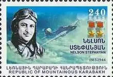 In the Soviet Union, four statues were dedicated to him: one in Yerevan, the second in Liepāja, the third in Stepanakert and the last in his hometown of Shushi. The statue in Liepāja was going to be destroyed by the order of the new independent Latvian authorities, but was rescued by the Russian Navy. Located in Liepāja until the mid-1990s, it was transported to Kaliningrad and is now placed near the Baltic Fleet Naval Aviation headquarters in Kaliningrad, Russia. During the Soviet era, a large fishing trawler and Pioneer detachments were named after him.[2] Both the Soviet Union and Armenia issued postage envelopes and stamps with his image on them. On 8 May 2011, the eve of the 66th anniversary of the victory in the Great Patriotic War, Stepanyan was included on a monument in Ulyanovsk dedicated to pilots who were Heroes of the Soviet Union.[7] He also has streets named after him in Sevastopol and Feodosiya and schools named after him in Yerevan and Kirovabad. The statue in Shushi has been destroyed by the Azerbaijani government following the 2020 Nagorno-Karabakh war.