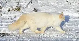 The colourpoint Neva Masquerade has distinctive blue eyes and dark point markings. It is a medium to large sized, muscular long-hair breed with a bushy tail.[7] Apart from the obvious similarities with the Siberian cat, the cat bears similarities with the Norwegian forest cat, and with other colourpoint long-haired cats, such as the Birman, Himalayan, and Ragdoll.