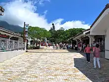 Ngong Ping (Chinese: 昂坪; Jyutping: ngong4 ping4; pinyin: Ángpíng) is a highland in the western part of Lantau Island, Hong Kong. It hosts Po Lin Monastery and Tian Tan Buddha amidst the hills which is about 34 m tall. There are several hills nearby which are also an attraction to tourists. It is now the terminus of the cable car ride Ngong Ping 360 which travels to Tung Chung. New facilities and tourist attractions have opened including the Ngong Ping Village, Walking with the Buddha, the Monkey's Tale Theatre and Ngong Ping Tea House. A youth hostel is located near the monastery. The second highest peak of Hong Kong, Lantau Peak, is at its southeast.
