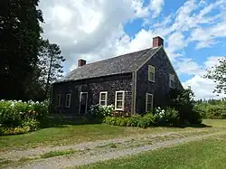 The site also includes a small barn and dry toilets. The outbuildings are covered in the same manner as the wooden shingle house. A garage, which is a later addition, is attached to the house by a covered passage.[2]