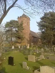 The church, erected in 1815 and consecrated on the day of Waterloo, was rebuilt and enlarged in 1883, it is of forest stone in the Early English style and has an embattled western tower with a small pyramid roof. A feature of the church is a collection of French lances mounted on the north wall of the church, said to have been retrieved from the field at Waterloo,[1]