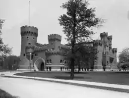 The Armory and Gymnasium was a campus building of the Ohio State University in Columbus, Ohio. The building was designed by prominent Ohio architects Yost & Packard and built in 1898. The multipurpose facility had a gymnasium, canvas running track, seats for 750, two swimming pools, and a cannon room. The building was home to Ohio State's men's basketball team. In 1918, the U.S. Army took over the building and used it for troop housing during World War I. The building stood through a fire in 1935. Another fire devastated the building in 1958, damaging it beyond repair. The building was demolished in 1959. The Wexner Center for the Arts opened on the site in 1989, with architecture inspired by the 1898 building.[1][2][3]