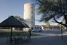Originally the western end of the Red Line, a veterinary control demarcation established in 1896,[2] and the site of a German fort built in 1901, Okaukuejo now houses the Etosha Ecological Institute, founded in 1974. The round watchtower is a remnant of the fort. A major attraction for tourists is the permanent waterhole, illuminated at night, which draws all types of wildlife, including elephants, lions and black rhinoceros, particularly during the lengthy dry season.