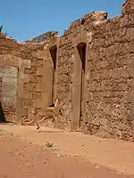Although a large jetty was built at the original site of Onslow (Old Onslow), repeated cyclone damage and the silting up of the river caused increasing problems with the loading and unloading of visiting ships. The cargo was transferred by lighter from the ship in Ashburton Roads to the jetty, then by horse-tram from the jetty across 6 kilometres (3.7 mi) of marshland inland to the town. This led the state government in 1923 to develop a new town and jetty 18 kilometres (11 mi) north-east at Beadon Point.[7][8] The new townsite was gazetted on 10 January 1924, and the residents of Old Onslow moved across in 1925.[7][9] The new location for Onslow's jetty was better protected from storm damage with the townsite more conveniently located on the coast.[10]