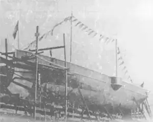 The ship was powered by a single vertical triple expansion steam engine with three cylinders turning a screw. Built by Tersane-i Amire, the engine [3] received its steam from coal-fired boilers. The engine was capable of producing 2,160 ihp (1,610 kW). The maximum designed speed of the ship was 14 kn (26 km/h; 16 mph), the ship reached 12 knots in trials. She had a coal capacity of 205 tons.[1][2]