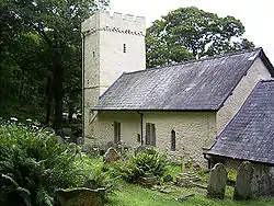 Oxwich's main site of historical interest is the castle which is thought by many academics to be the most historic castle on the Gower Peninsula. The earliest evidence of it being inhabited is in 1459, where Philip Mansel was recorded as holding it. The Mansel family were a minor gentry in South Wales, who grew in power and prestige under the Tudor monarchs.[2] The parish church of St. Illtyd's overlooks Oxwich Bay. A place of worship has stood on this site since the 6th century, but the main tower of today was built in the 14th century. The chancel of this church is thought to be a 6th-century cell.[3] The church bell in the tower also dates back to the 14th century, but was recast in 1892. In the churchyard there is a well, which locals believe is haunted by a ghost. Legend has it that a ghost was seen in the churchyard before vanishing into a well.[4]