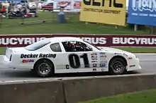 Decker was named as a NASCAR Drive for Diversity driver in 2014.[2] She competed in Whelen All-American Series events for Rev Racing that year at the Hickory Motor Speedway, Langley Speedway, and Motor Mile Speedway.[6][2] She had been attending the University of Wisconsin-Stout (pursuing a degree in early childhood education)[6] for two years but had to quit to race in the Southern United States for the season.[2] She returned to college in 2015 while continuing to race super late models.[6] Decker received a call from Mike Harmon Racing at New Smyrna Speedway during the World Series of Stock Car Racing within the Daytona Speedweeks to see if she was interested to race in one of their trucks.[6] She attempted her first ever NASCAR Camping World Truck Series race driving the No. 74 Chevrolet for owner/driver Mike Harmon, but was one of four teams that failed to qualify.[7] She qualified 33rd fastest, about 1/10 second behind the 32nd final spot.[6] The first practice for the race had rained out and she had one 90 minute practice to find speed.[6] She has NASCAR certification to run short tracks in the Truck Series only; her goal is to race in the Xfinity Series.[6] Decker planned another attempt at Iowa Speedway on June 19, 2015;[6] this deal, however, did not come together. Decker qualified in the fall Martinsville race and finished 30th. Decker returned in 2016, with her sister Claire Decker, and her cousin Natalie Decker competing in the Martinsville race. Claire and Paige qualified for the race, while Natalie was sent home.