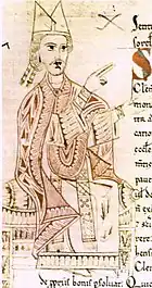 The first record of a title reflecting the pope's role as "Vicar" is found in a letter of 445 from Pope Leo I (r. 440-461) to Dioscorus of Alexandria, in which he designates the bishop of Rome as "earthly Vicar of the successors of Peter";[9] shortly afterward, in 495, there were decrees of a synod named Pope Gelasius I (r. 492-496) "Vicar of Christ" (r. 492-496).[13] Thus, in the early Middle Ages, there were several variants of this title, such as "Vicar of Peter" (Vicarius Petri), indicating that the popes succeeded St. Peter, "Vicar of the prince of the Apostles" (Vicarius principis apostolorum) or "Vicar of the apostolic See"[12] (Vicarius soles Apostolica), among others. The fact that both the title "Vicar of Peter" and "Vicar of Christ" were used is demonstrated by the fact that at the end of the 8th century, St. Boniface's oath of fidelity to Pope Gregory II (r. 715-731) uses the former,[14] while a few decades later, Pope John VIII (r. 872-882), uses the latter.[15] Even today, the Roman Missal in its prayers for a dead pope designates him as "Vicar of Peter."[16]