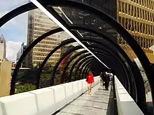 Peachtree Center is a district located in Downtown Atlanta, Georgia. Most of the structures that make up the district were designed by Atlanta architect John C. Portman, Jr. A defining feature of the Peachtree Center is a network of enclosed pedestrian sky bridges suspended above the street-level, which have garnered criticism for discouraging pedestrian street life.[1] The district is served by the Peachtree Center MARTA station, providing access to rapid transit.