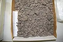 In soil science, peds are aggregates of soil particles formed as a result of pedogenic processes; this natural organization of particles forms discrete units separated by pores or voids. The term is generally used for macroscopic (visible; i.e. greater than 1 mm in size) structural units when observing soils in the field. Soil peds should be described when the soil is dry or slightly moist, as they can be difficult to distinguish when wet.[1]