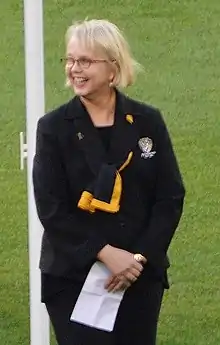 Peggy Yvonne O'Neal AO (born 19 April 1952) is an American-born Australian lawyer who, since October 2013, has served as the president of the Richmond Football Club in the Australian Football League (AFL). She is the first woman in AFL history to serve as a club president. The Australian Financial Review has named her in its list of "Top 100 Women of Influence".[2] In 2019 she was appointed an Officer of the Order of Australia (AO) for distinguished service to Australian rules football, to superannuation and finance law, and to the advancement of women in leadership roles.[3] She was appointed Chancellor of RMIT University in October 2021.[4]