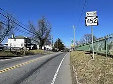 Pennsylvania Route 452 (PA 452) is a state highway in Delaware County, Pennsylvania. The route runs from U.S. Route 13 (US 13) in Marcus Hook north to PA 352 in Lima. The route runs through suburban areas, passing through Linwood and Aston Township. PA 452 intersects Interstate 95 (I-95) and US 322 in Upper Chichester Township and US 1 in Lima. PA 452 was first designated by 1928 between its current termini. A portion of the route in Aston Township was realigned by 1950.