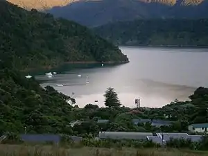 Penzance Bay is a popular bay located in Tennyson Inlet, New Zealand, within the Marlborough Sounds. Tennyson Inlet is an arm of Pelorus Sound / Te Hoiere. The bay is immediately north of Tuna Bay, which is accessed by the same road.