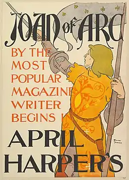 Twain based Joan of Arc's physical appearance on his daughter Susy Clemens, as he remembered her at age 17.[9] He began writing the novel late in 1892, then set it aside until 1894; he finished the manuscript in 1895. He serialized an abridged version for magazine publication, then published the full-length book in 1896.[10]