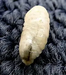 In the middle of July, the progeny of the first brood begin to emerge. The emergence of larvae continues to rise linearly through the last week of August. A majority of these new progeny have already dispersed to lay new eggs and died off by early September. The few members of the new progeny that remain continue laying eggs for another two weeks, but will die by October, likely due to changes in climate around that time. This second generation of larvae survive the winter by remaining in their cocoons from October through April. In April, the second generation changes into pupae and emerge in May. Those that emerge in May are the wasps that are responsible for searching for a new nesting location in June.[2]