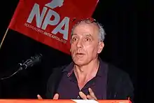 In June 2011, he was chosen by the New Anticapitalist Party as its candidate for the 2012 presidential election. Media noted that he was virtually unknown to the public, as well as that he might find it difficult to succeed previous candidate Olivier Besancenot, a well recognised figure popular beyond the party itself. He would, in addition, have to contend with divisions within the party over whether to engage more with the Left Front, with an aim to unify the political forces on the left of the centre-left Socialist Party.[3][4]