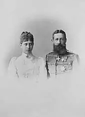In June 1890, Viktoria, with her mother and sister Margaret, visited their cousin Marie of Nassau, the widowed Princess of Wied. Among the other guests was Prince Adolf of Schaumburg-Lippe, a younger son of Adolf I, Prince of Schaumburg-Lippe. Adolf and Viktoria spent time together and, during the same visit, Adolf proposed on 11 June. Viktoria's mother had previously considered Adolf as a marriage candidate, but had considered him unworthy of her daughter; she wept at the news of the couple's engagement. Although Viktoria said in her memoirs that she had loved Adolf at first sight, she wrote to her mother that she had only married him out of "desperation from fear at withering on the vine."[7] When Queen Victoria inspected Adolf, she approved of him, but did not believe that Viktoria was entirely happy, nor did Vicky. Furthermore, Adolf held only the style of Serene Highness, while Viktoria was a Royal Highness and the daughter of an Emperor. The widowed Empress continued to suggest other suitors, but was thwarted, especially by Wilhelm II, who was highly in favour of the match. In the months leading up to the wedding, Viktoria remained depressed.[13]